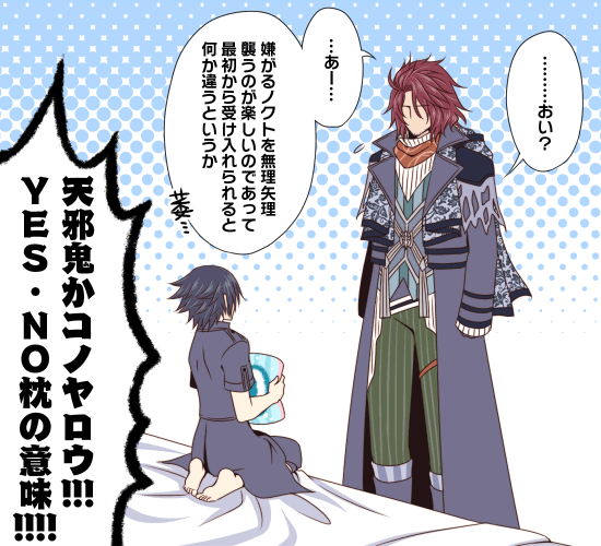 結局ノクトが嫌がってたら嬉々として襲うし、アーデンがシたい気分であればノクトの都合はお構いなしなので、YES・NO枕の意味は無いのであった。