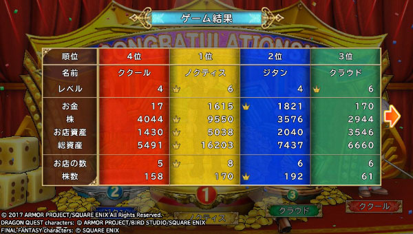 ちなみにノクトはAランクなのですが、自分の店に増資せず、株を買えるだけ買って相乗りで稼ぐタイプに設定されていたので、脅威の高額店を作らないキャラという点でAランクだけど遊びやすい対戦相手でした。