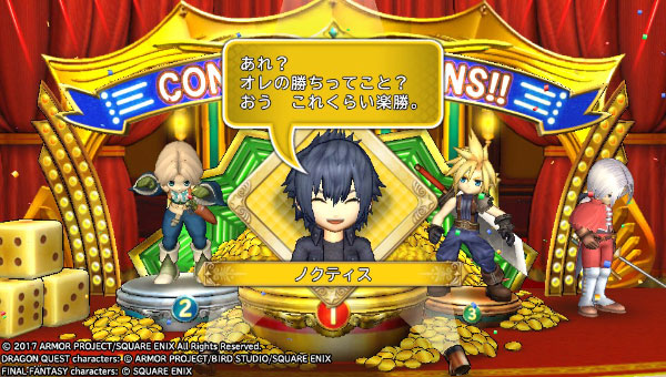 プレイヤーとして選んだキャラはプレイ中には喋りませんが、優勝したらハイライトでコメントくれるので、ノクトの優勝コメント目当てに頑張ってみました。