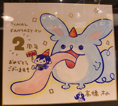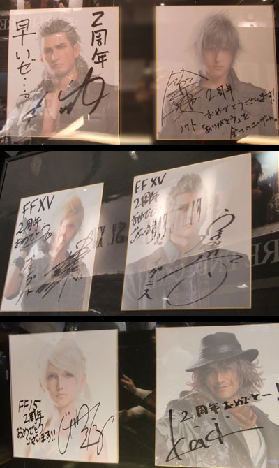 今回はFF15発売2周年記念のお祝いという事で、店内にお祝いイラストやサイン色紙が飾られていました。