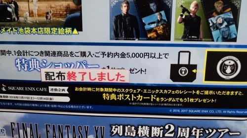 昨日の夜、池袋アニメイト本店のFF15オンリーショップに行ってきました!